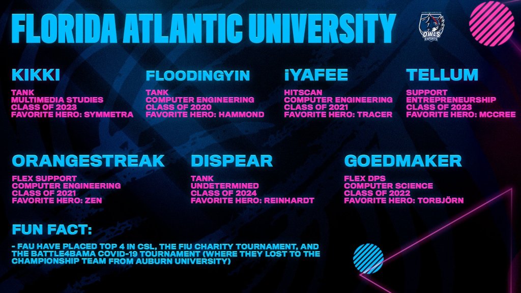 I joined the FAU Overwatch team as a Flex Support during my Junior year at the team’s inception. With my experience in the community competitive scene, I led the team as the captain before stepping back to focus on grad school prep and applications.